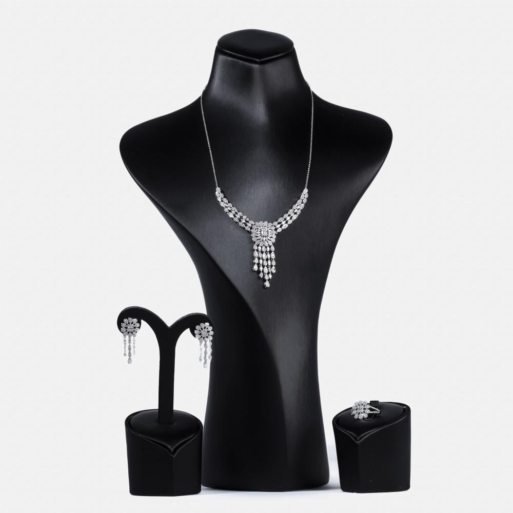 طقم زركون باللون الفضي، بتصميم فخم يناسب المناسبات البسيطة، تقدمه لك شيري بجودة عالية